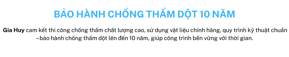 GIA HUY đặc biệt chú trọng đến độ bền và chất lượng công trình với chính sách bảo hành chống thấm dột lên đến 10 năm.