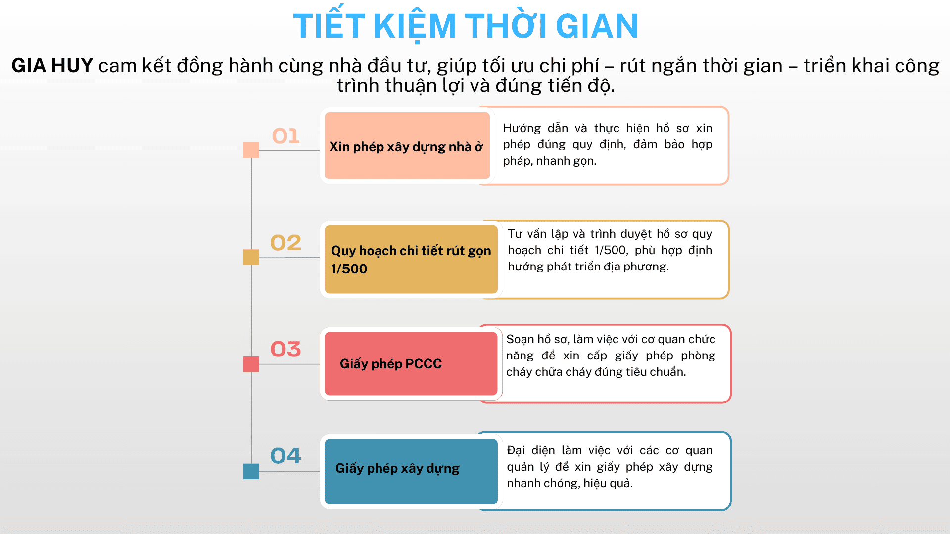 Nhà đầu tư không chỉ nhận được giải pháp thiết kế và xây dựng tối ưu, mà còn tiết kiệm đáng kể thời gian xử lý thủ tục pháp lý nhanh chóng.